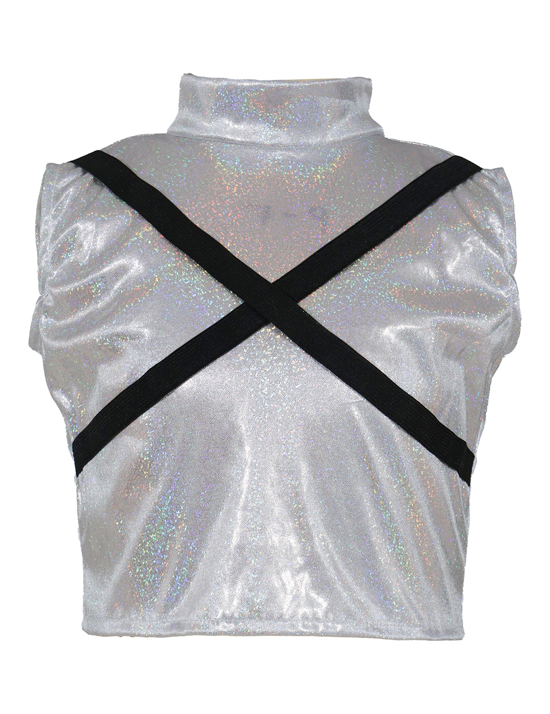 Vrchná a spodná časť sú striebornej farby s dúhový efektVrch má krátke rukávy s vysokým golierom a dvoma prišitými ramienkami vpredu. Spodné diely majú elastický pás a sú zdobené čiernym opaskom so zlatou prackou vpredu. Z šortiek visí integrovaná zlatá retiazka.