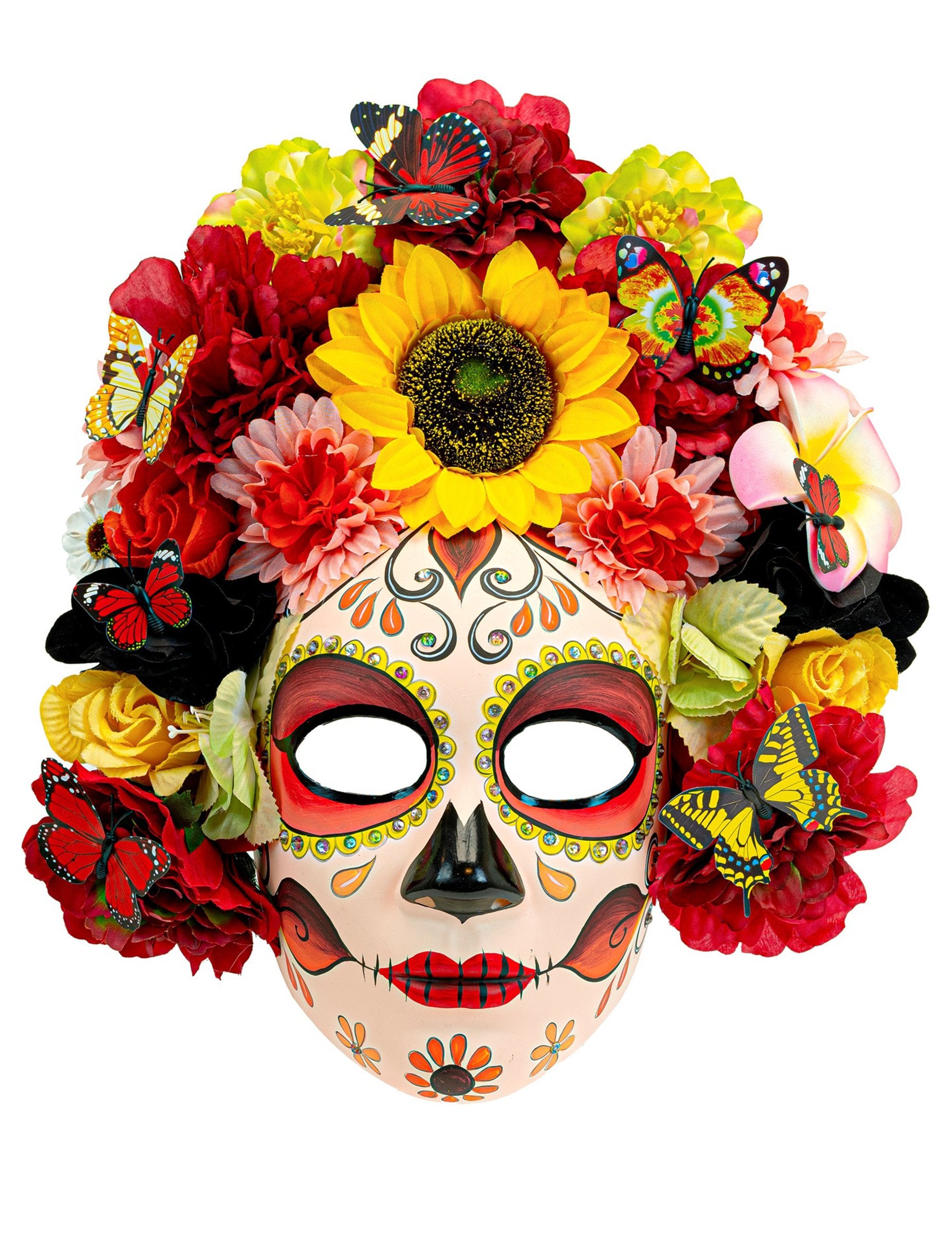 Maska na Deň mŕtvych s kvetmi a motýľmi (dospelá)