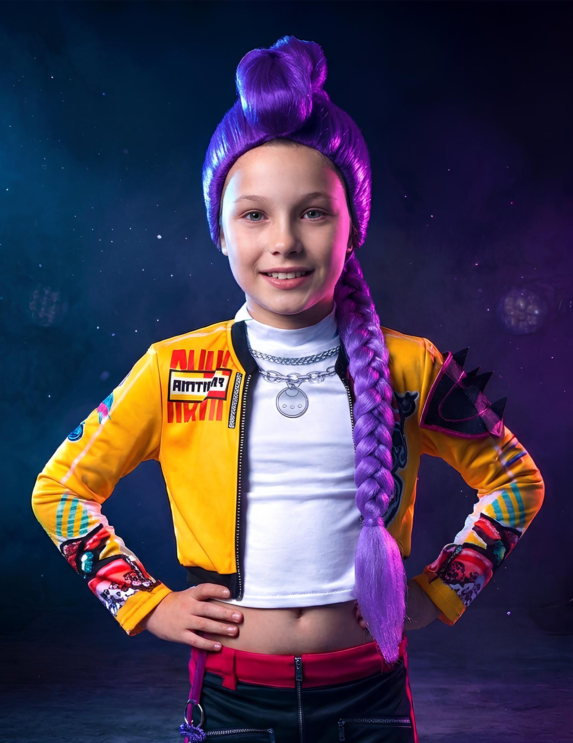 S touto parochňou Rumi Kpop Demon Hunter pre dievčatá sa každé dieťa môže premeniť na skutočnú hrdinku úspešného animovaného filmu KPop Demon Hunters. Inšpirovaná postavou Rumi, speváčky a lovkyne démonov, táto dlhá fialová vrkoč so zapleteným drdolom vyjadruje silu a štýl K-pop idolov. Ideálna na karneval, vystúpenie alebo kostýmovú párty, táto parochňa rozžiari každú mladú fanúšičku pripravenú vstúpiť do magického a hudobného sveta filmu!