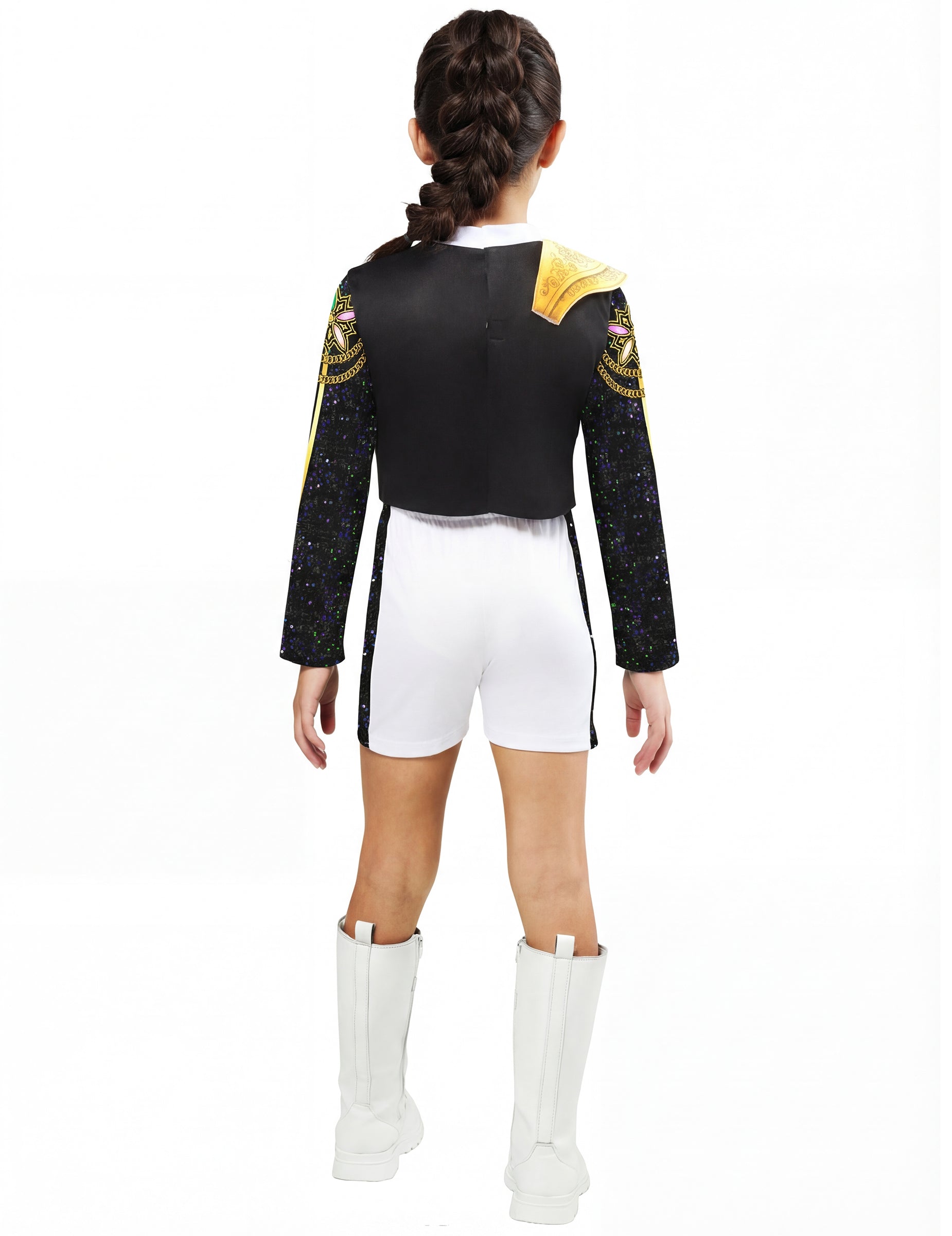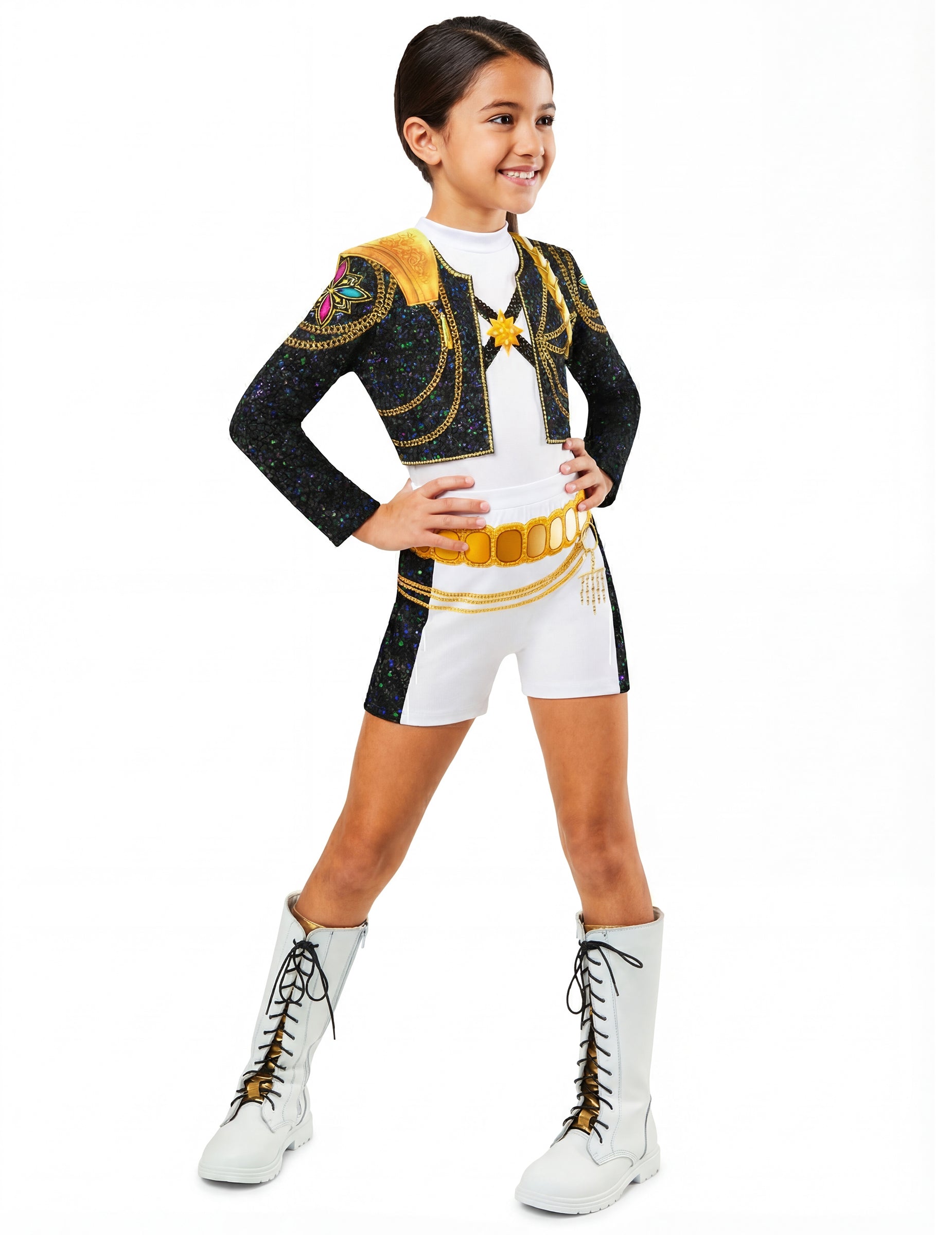 Toto klasický kostým Rumi Golden K-pop Demon Hunter™ pre dievča je mladšie Oficiálne licencovaný Kpop Demon Hunter™ a umožňuje vám znovu vytvoriť vzhľad postavy na maškarnom podujatí. Obsahuje potlačený top a šortky.