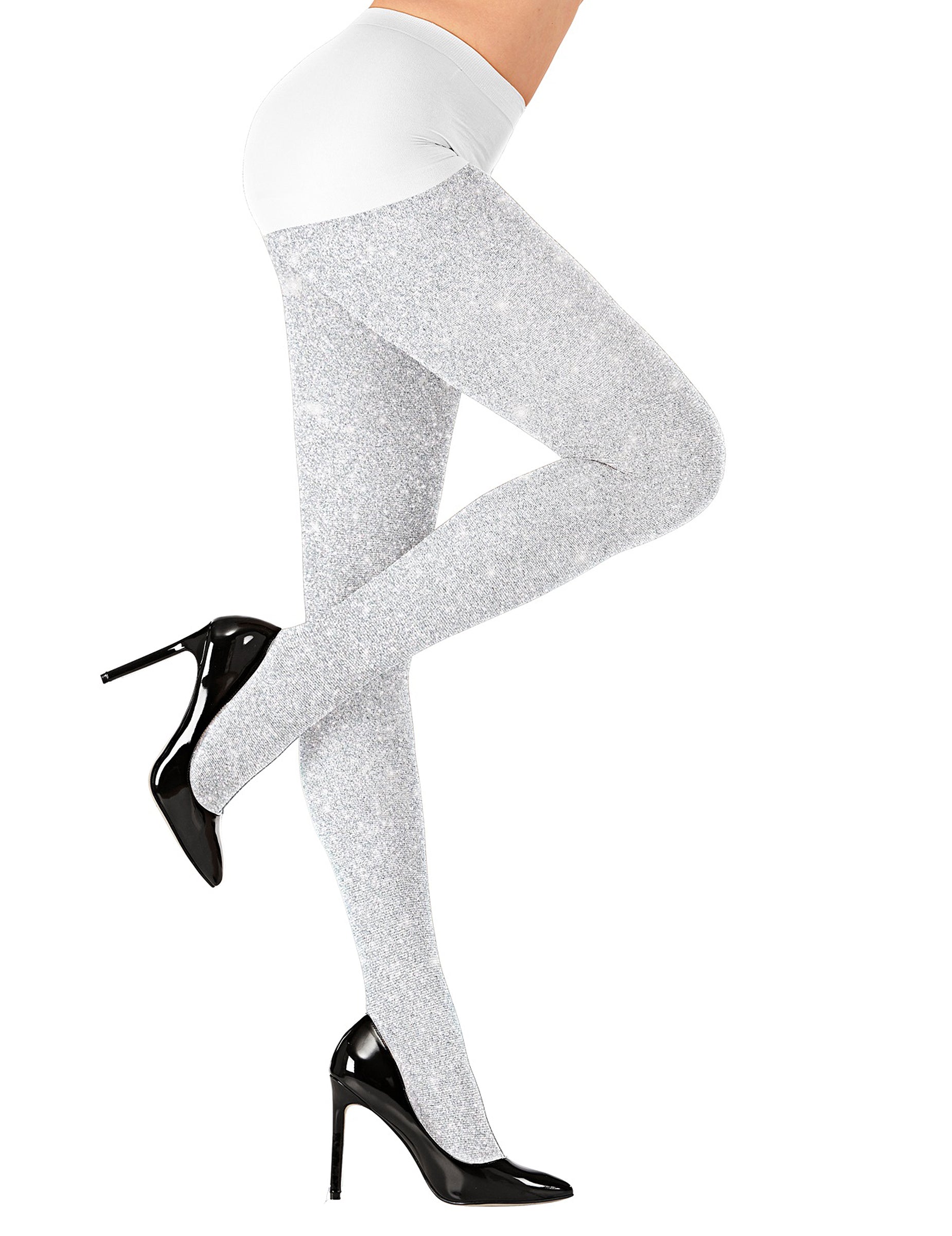 Tieto trblietavé biele pančuchy pre dospelých dodajú vášmu vzhľadu nádych lesku. Ich mäkká, mierne elastická textúra obopína postavu a zároveň rozptyľuje jemné, trblietavé odlesky, ideálne na dotvorenie elegantného outfitu alebo kostýmu na párty. Ideálne na Silvestra, predstavenie alebo maškarný večierok, tieto pančuchy dodajú vášmu štýlu žiarivý a očarujúci nádych.