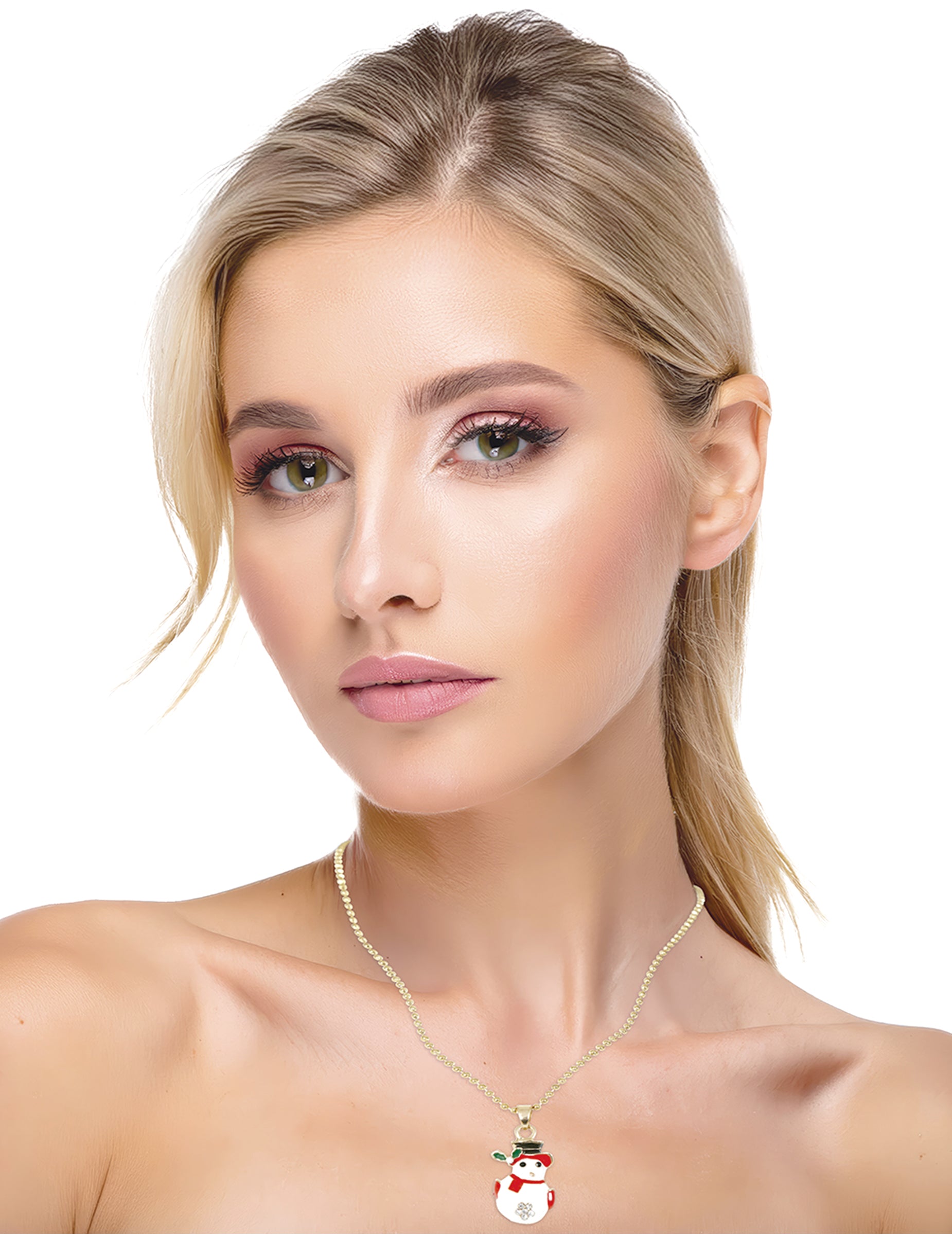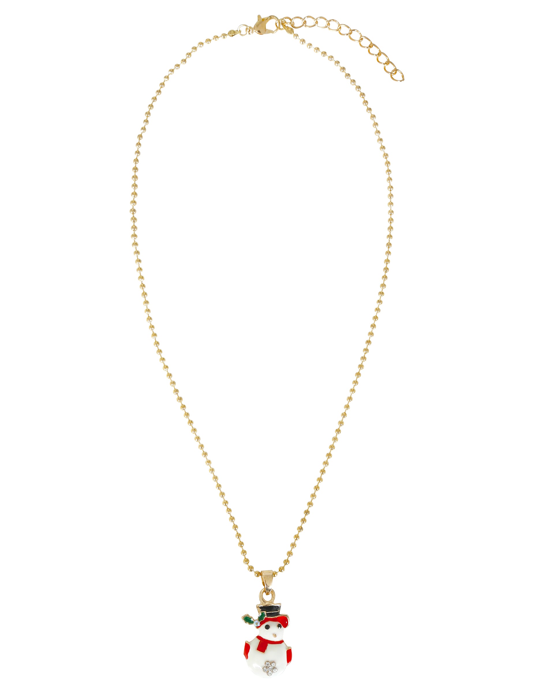 Tento vianočný prívesok so snehuliakom dodá vášmu outfitu nádych zimnej nálady. Prívesok je zavesený na jemnej zlatej retiazke a zobrazuje rozkošného snehuliaka s čiernou čiapkou, červenou šatkou a trblietavými zlatými detailmi. Jeho elegantný a slávnostný dizajn sa hodí k formálnemu večernému oblečeniu aj k ležérnemu vianočnému oblečeniu. Je to rozkošný a hravý šperk, ideálny na štýlové šírenie sviatočnej mágie.