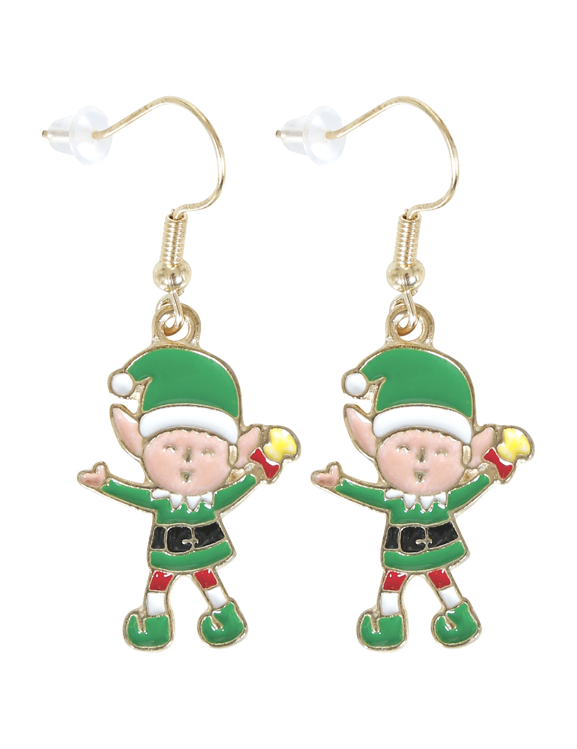 Tieto kovové náušnice v tvare vianočných škriatkov dodajú vašim sviatočným outfitom zábavný a žiarivý nádych. Každý prívesok predstavuje veselého škriatka oblečeného v zelenej a červenej farbe, ktoré sú symbolickými farbami tejto sezóny. Ich ľahká zlatá konštrukcia sa pri každom kroku krásne pohybuje, priťahuje svetlo aj pozornosť. Ideálne na vianočné večere, večierky alebo aj na bežné nosenie počas sviatkov.