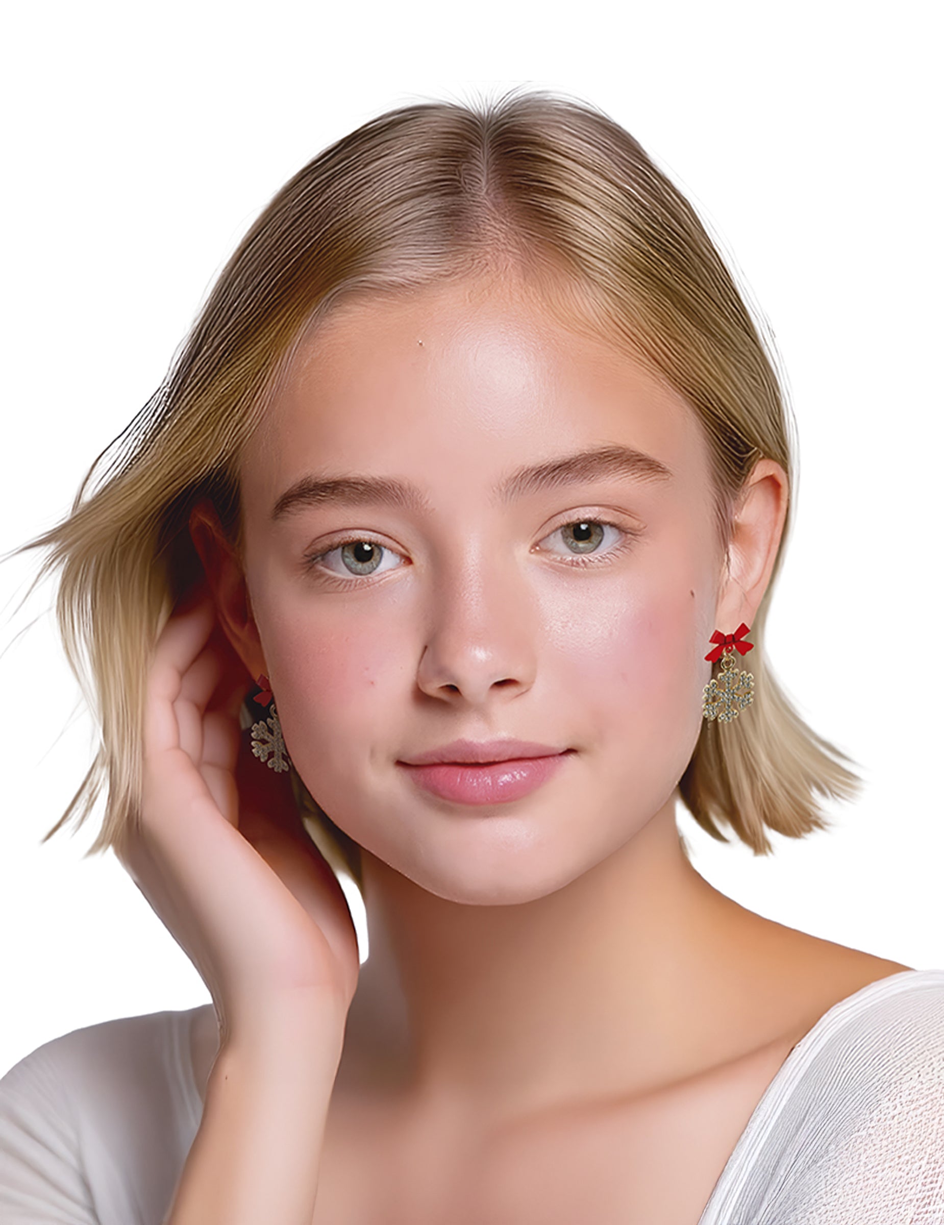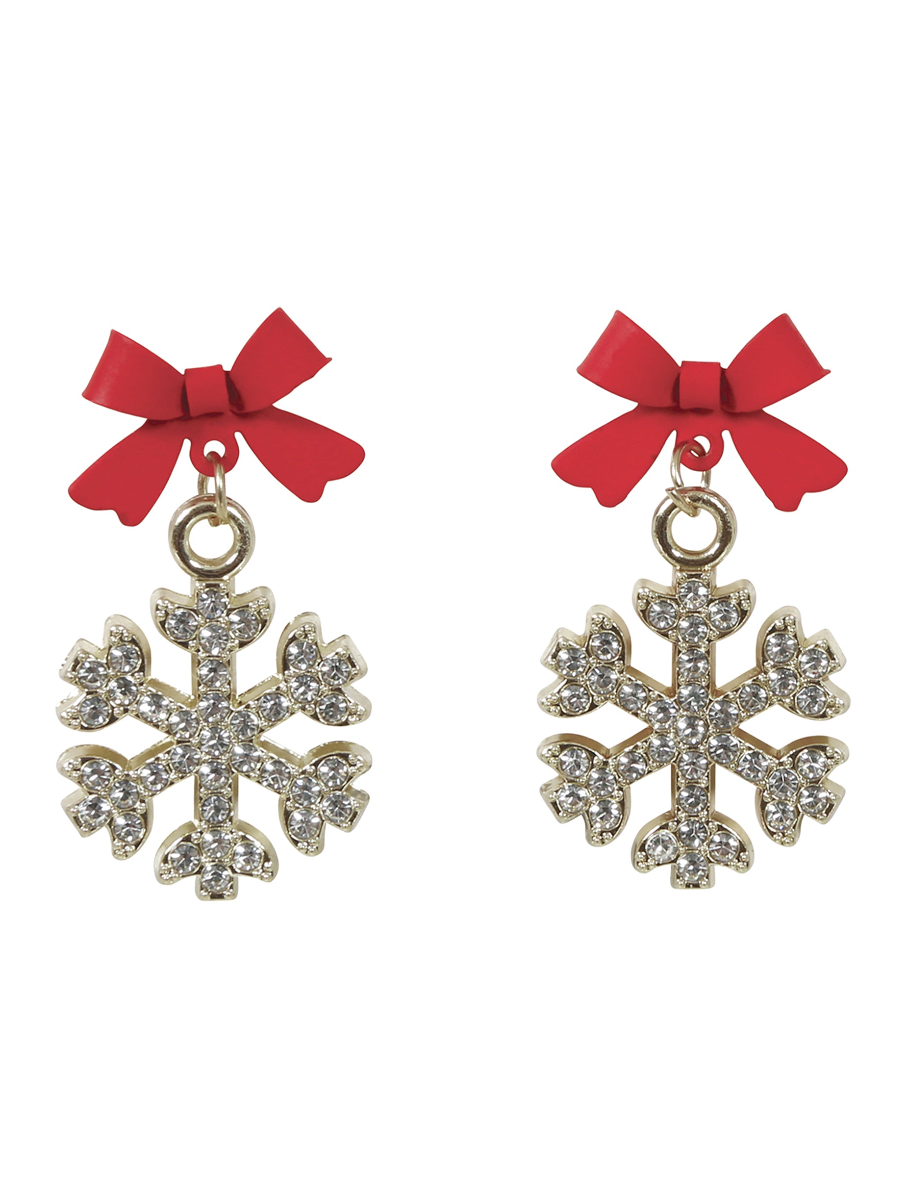 Tieto trblietavé kovové náušnice v tvare snehových vločiek dodajú vašim slávnostným outfitom elegantný a iskrivý nádych. Každá zlatá snehová vločka je ozdobená červenou mašľou, ktorá evokuje kúzlo Vianoc a jemne rozžiari vašu tvár. Sú ľahké a pohodlné, dajú sa ľahko nosiť počas celého dňa alebo na slávnostný večer. Perfektný šperk, ktorý dotvorí váš vianočný štýl s noblesou a originalitou.