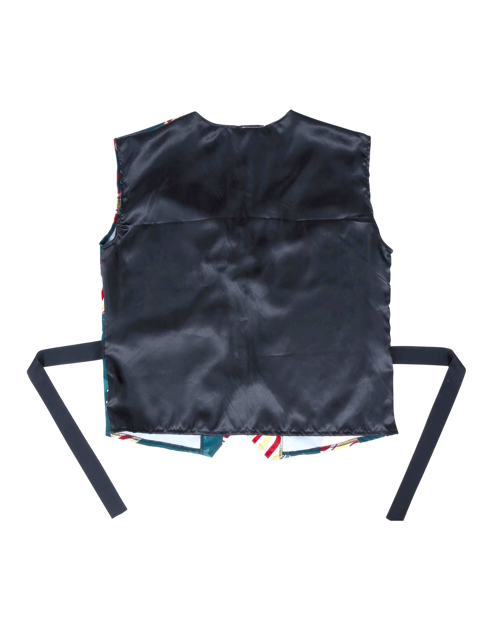 Tento vesta s motívom snehových vločiek a vianočných gúľ pre dospelých má originálny a elegantný štýl. Na tmavozelenom podklade sa biele vločky a červené a zlaté gule miešajú v veselom a farebnom vzore, ktorý je ideálny na oslavu kúzla sviatkov. S rovnými strihom a zapínaním na gombíky vpredu sa ľahko nosí na košeli pre štýlový a ležérny vzhľad. Ideálne na vianočnú večeru, párty s priateľmi alebo firemnú akciu, táto vesta určite upúta všetky pohľady.