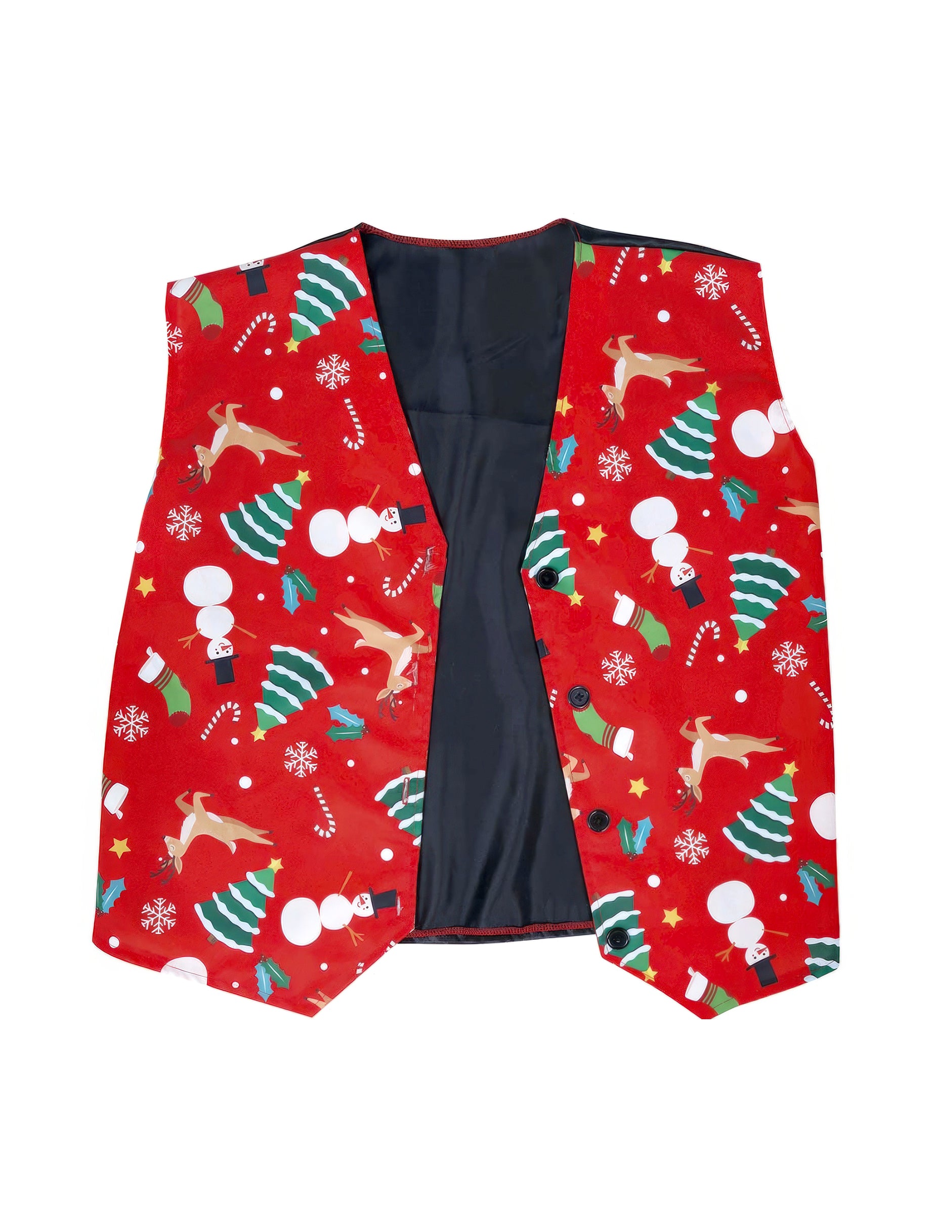 Tento červený kardigan s vianočnou tematikou pre dospelých je perfektnou voľbou pre dodanie sviatočného šmrncu. Zdobený farebnými motívmi jedlí, sobov, snehových vločiek a sladkostí, dodá vášmu sviatočnému outfitu rozmarný nádych. Jeho klasický strih a zapínanie na gombíky umožňujú jednoduché nosenie cez košeľu, čím vytvoríte elegantný a zároveň zábavný vzhľad. Ideálny na vianočnú večeru, večer s priateľmi alebo do uvoľnenej atmosféry v kancelárii.