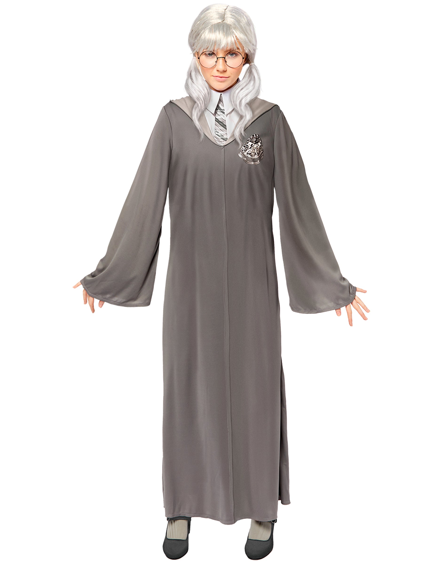 Tento dámsky kostým Ufňukanej Myrtly z Harryho Pottera dokonale napodobňuje tajomný štýl slávneho ducha z Bystrohlavu. Dlhé, splývavé sivé šaty s mierne rozšírenými rukávmi dokonale evokujú éterické čaro postavy. Zdobený golier a erb dodávajú ikonický nádych Bystrohlavu. Perfektný outfit, na ktorý sa vžijete do Myrtliných topánok na párty s tematikou Harryho Pottera alebo na magickú kostýmovú párty.