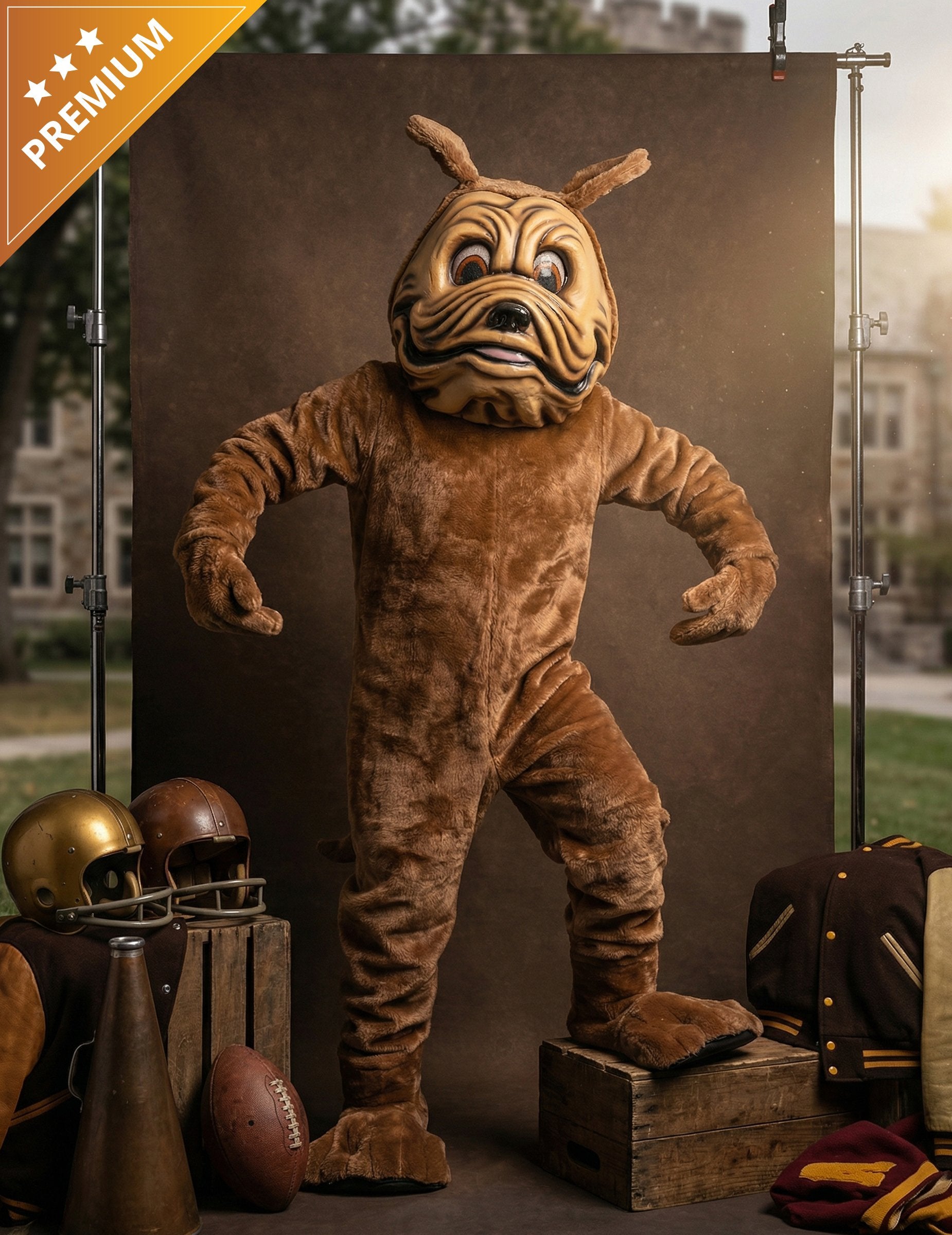 Tento kostým maskota pre dospelého hnedého psa vytvára zábavnú siluetu vďaka mäkkému overalu, výraznej maske, zodpovedajúcim rukaviciam a návlekom na topánky, ktoré spájajú celý outfit. Jednofarebný hnedý overal zakrýva celé telo a je ľahko rozpoznateľný. Maska zobrazuje psiu hlavu s výraznými črtami, čím vytvára realistický efekt. Rukavice prirodzene dopĺňajú ruky, zatiaľ čo návleky na topánky rozširujú efekt až na zem, čím vytvárajú skutočne psí vzhľad. Tento maskot je ideálny na oživenie karnevalu, narodenín alebo akejkoľvek inej slávnostnej udalosti, kde priateľský a roztomilý maskot dodá nádych prekvapenia.