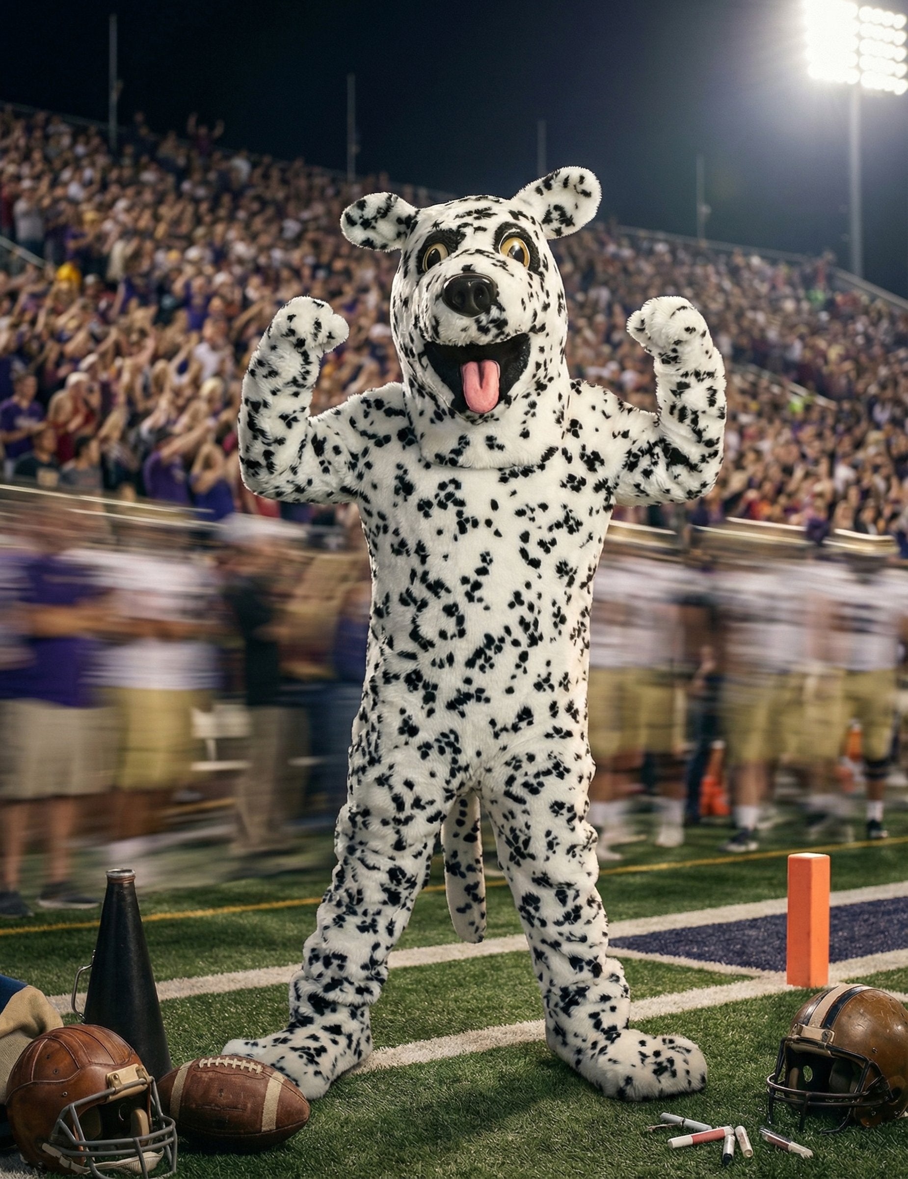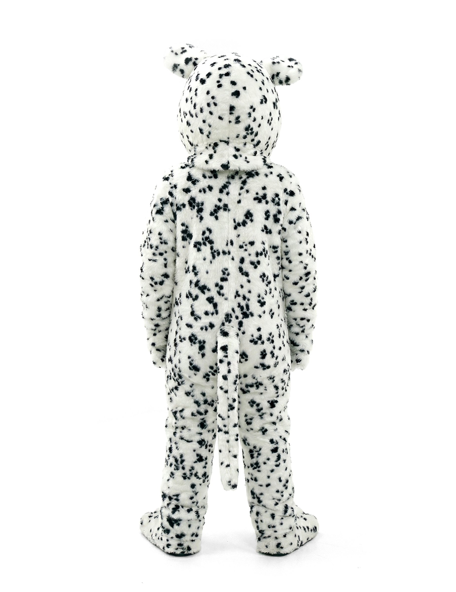 Tento prémiový kostým maskota - dospelého dalmatínca - ponúka kompletný a pohodlný outfit na vytvorenie roztomilého psa na karneval alebo narodeninovú oslavu. Sada obsahuje overal, pár rukavíc, masku a pár návlekov na topánky, vďaka čomu si vytvoríte dalmatínca, ktorého okamžite rozpoznateľne vezmete. Overal je pokrytý bielou umelou kožušinou s čiernymi škvrnami a poskytuje realistický a jednotný vzhľad. Jeho voľný strih umožňuje slobodu pohybu, či už pri pozdrave, prechádzke alebo zábave skupiny. Zladené rukavice predlžujú efekt predných labiek a zabezpečujú plynulú siluetu. Maska zvýrazňuje plný výraz postavy: široké oči, zaoblené uši a vyplazený jazyk pre radostný výraz. Jej obopínajúci tvar pomáha prilákať pozornosť a vytvára zábavný dojem, ideálny na interakciu s hosťami. Návleky na topánky, navrhnuté tak, aby pripomínali zadné laby, dotvárajú vzhľad a posilňujú ilúziu kompletného dalmatínca. Tento prémiový kostým vám umožňuje stelesniť priateľského a dynamického psa, ideálny na oživenie párty, zábavu detí a zabezpečenie nezabudnuteľných fotografických momentov.