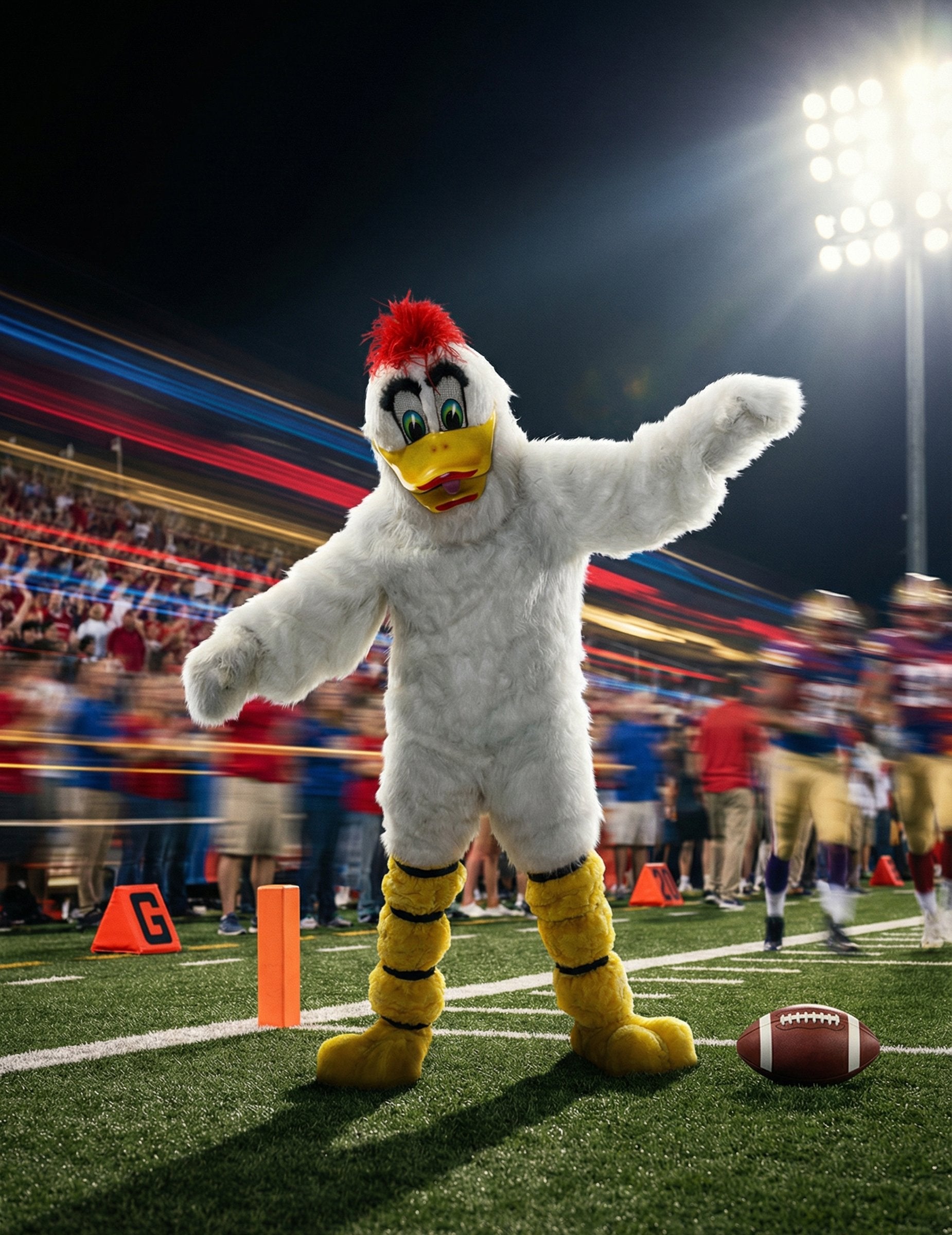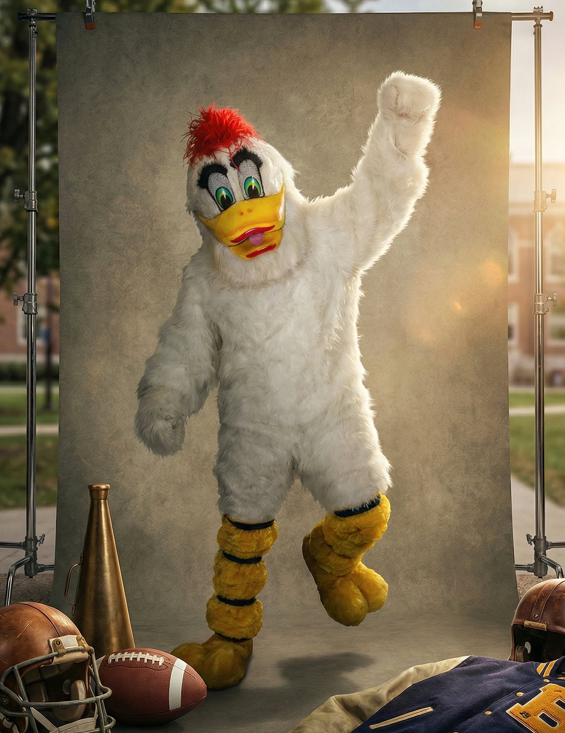 Tento prémiový kostým maskota bielej kačky pre dospelých ponúka kompletný a štýlový outfit na vytvorenie živej atmosféry na karnevale alebo narodeninovej oslave. Sada obsahuje overal, pár rukavíc, masku a pár návlekov na topánky, ktoré vám umožnia vytvoriť úplne jednotnú postavu od hlavy po päty. Overal je pokrytý bielou umelou kožušinou a má mäkký a bezšvový vzhľad. Jeho voľný strih umožňuje ľahký pohyb pri chôdzi, vítaní alebo zábave hostí. Rukavice, ktoré ladia s overalom, prirodzene predlžujú efekt krídel a vytvárajú ucelenú siluetu. Maska dodáva kostýmu plný výraz: veľké, farebné oči, výrazný zobák a červené chumáče navrchu, ktoré jej dodávajú energickú tvár. Detaily tváre ponúkajú živý a okamžite rozpoznateľný vzhľad, ideálny na prilákanie pozornosti a vytvorenie radostnej atmosféry. Návleky na topánky dopĺňajú outfit tvarom pripomínajúcim kačacie nohy, čím zabezpečujú vizuálnu kontinuitu od hlavy po päty. Tento prémiový kostým vám umožní stelesniť zábavnú a roztomilú postavu, ideálny na vyčarovanie úsmevu na tvári, zábavu davu alebo účasť na fotografovaní počas celej oslavy.