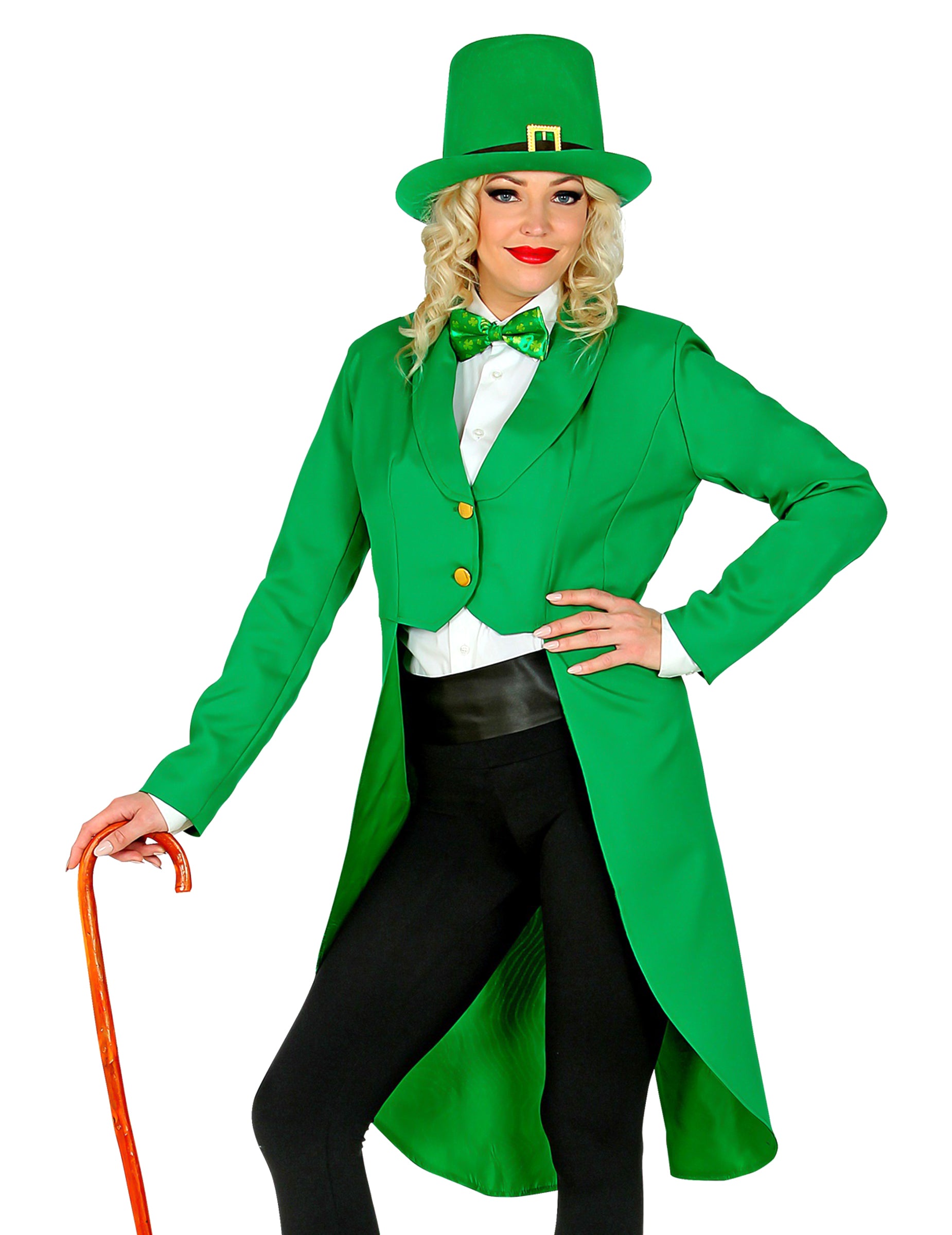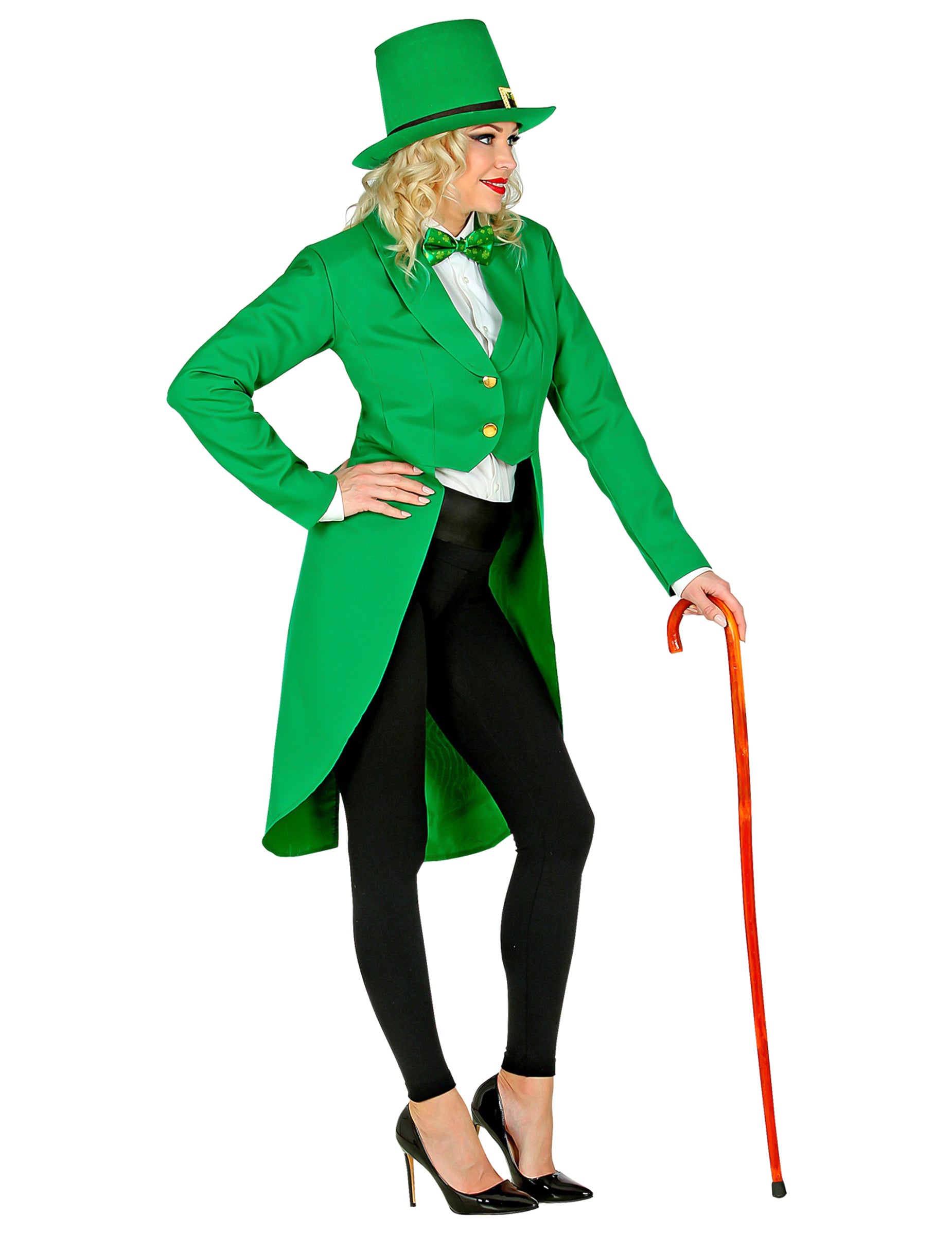 Táto zelená fraková bunda na Deň svätého Patrika pre ženy prináša slávnostný vzhľad vďaka svojmu dlhému zadnému strihu a žiarivej zelenej farbe, ktorá je ideálna na túto neodmysliteľnú oslavu. Jej štruktúrovaný tvar okamžite zvýrazní siluetu a zároveň ponúka elegantný a veselý štýl. Kontrastné gombíky pridávajú vizuálny akcent, ktorý posilňuje atmosféru oslavy. Ľahká a príjemná na nosenie, táto bunda sa stáva ústredným prvkom kostýmu na Deň svätého Patrika alebo na akúkoľvek tematickú párty.