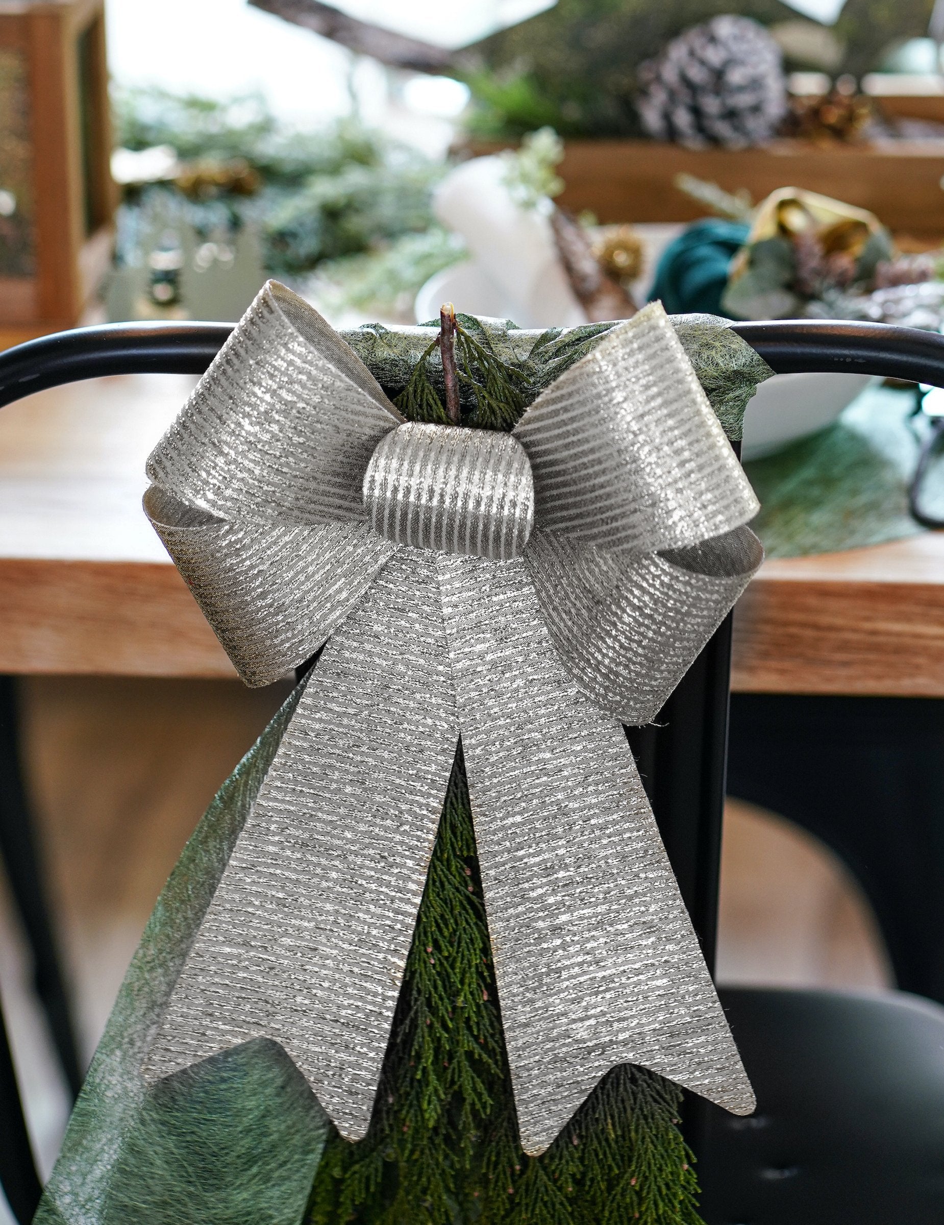 Tento trblietavý strieborný motýlik ponúka krásny efekt vďaka svojmu rozmeru 23 x 38 cm a lesklému povrchu, ktorý výborne odráža svetlo. Jeho dlhé stuhy a objemný tvar umožňujú ľahko ho pridať do výzdoby bez toho, aby ju preťažil. Perfektný na oslavu, striebornú tému alebo na dekoratívne balenie, kde dodá lesklý akcent a urobí vašu scénu ešte harmonickejšou, elegantnejšou a príjemnou na pohľad.