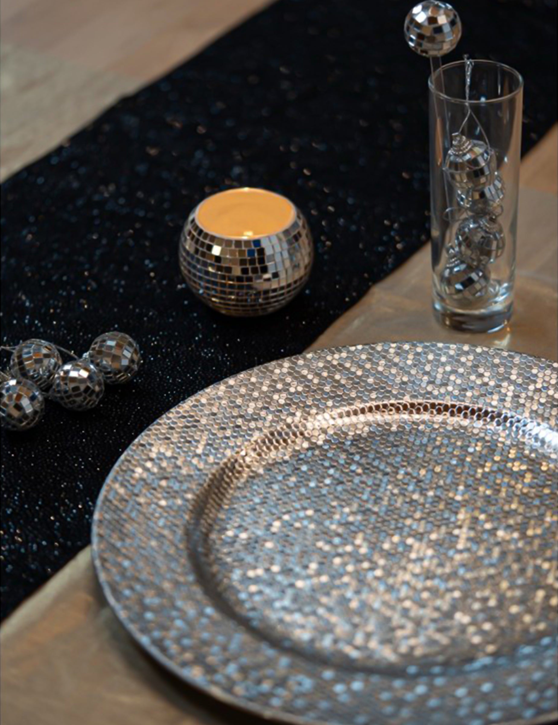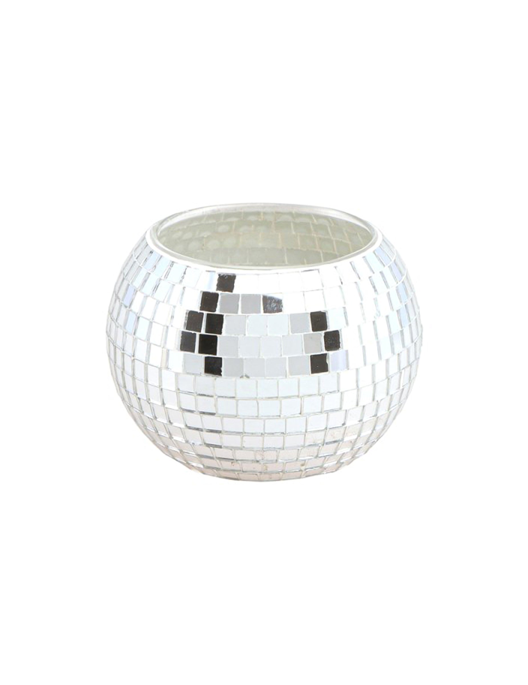 Tento jedinečný svietnik má úžasný strieborný efekt diskogule, ktorý zachytáva svetlo pre výnimočný lesk.