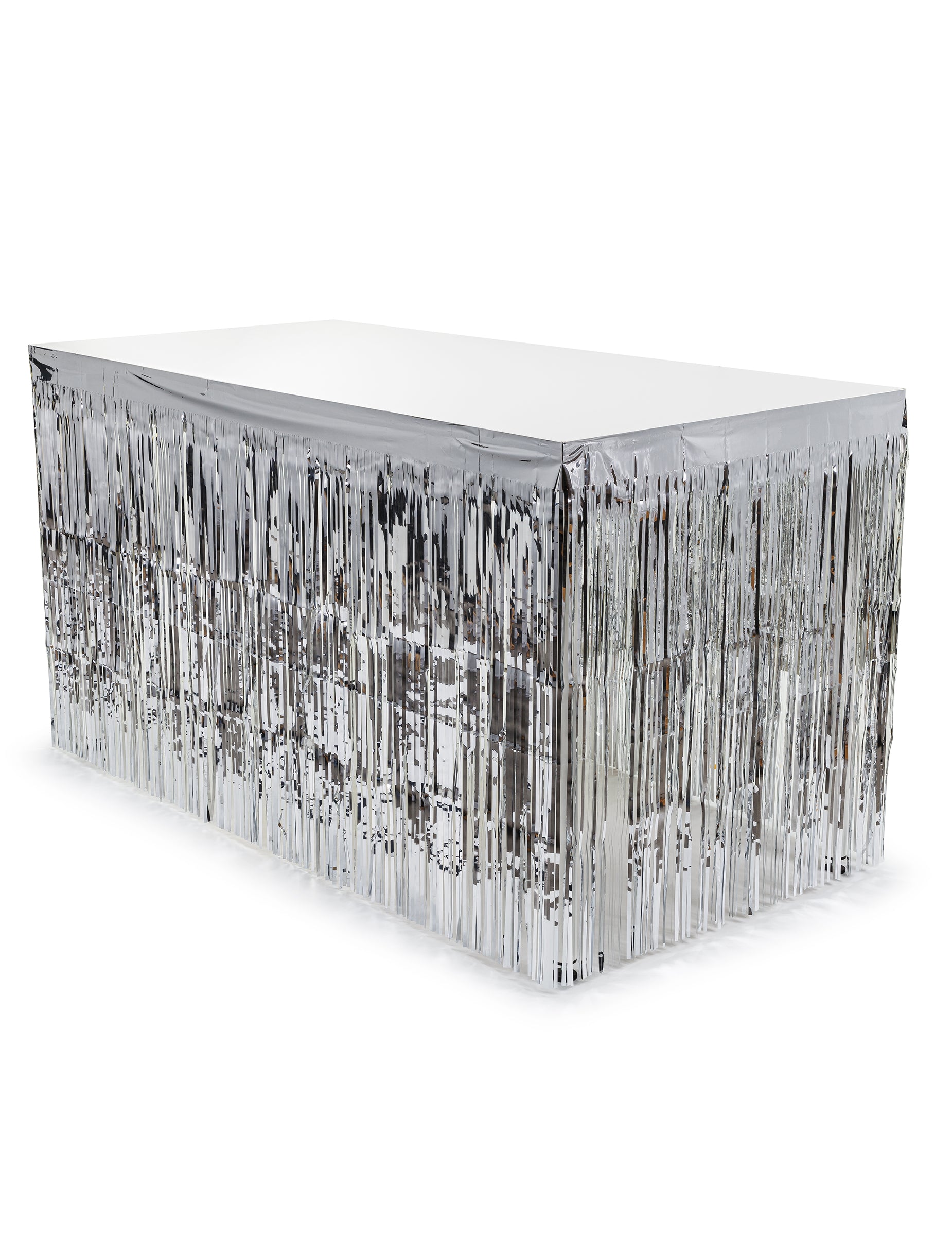 Táto strieborná strapcová sukňa na stôl umožňuje ozdobiť stôl a vytvoriť slávnostnú dekoráciu počas vašich osláv.