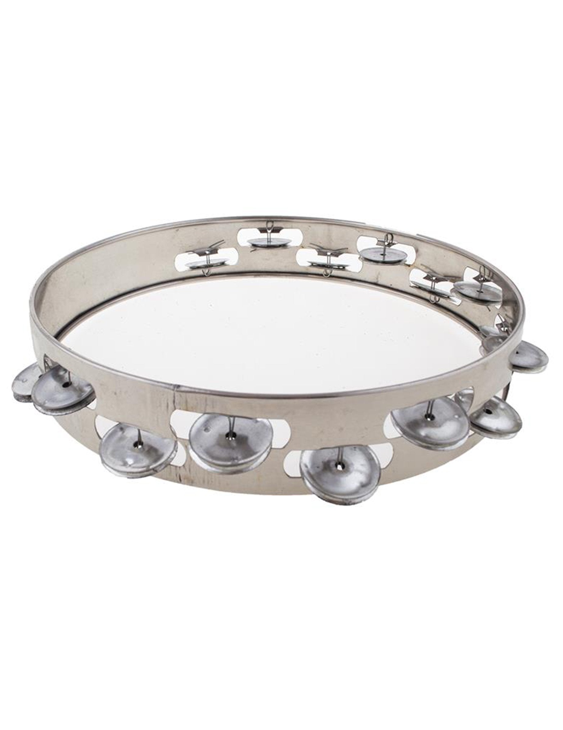 Jeho kruhová, celokovová konštrukcia je zdobená striebornými činelmi rozmiestnenými po celom ráme. Celkový efekt je jasný, moderný vzhľad, ktorý zdôrazňuje perkusívnu povahu tohto nástroja. Viditeľné kovové prvky zdôrazňujú jeho osobitý štýl a zvukovú prítomnosť, ideálne na sprevádzanie tempa alebo značenie rytmu počas hudobných vystúpení.